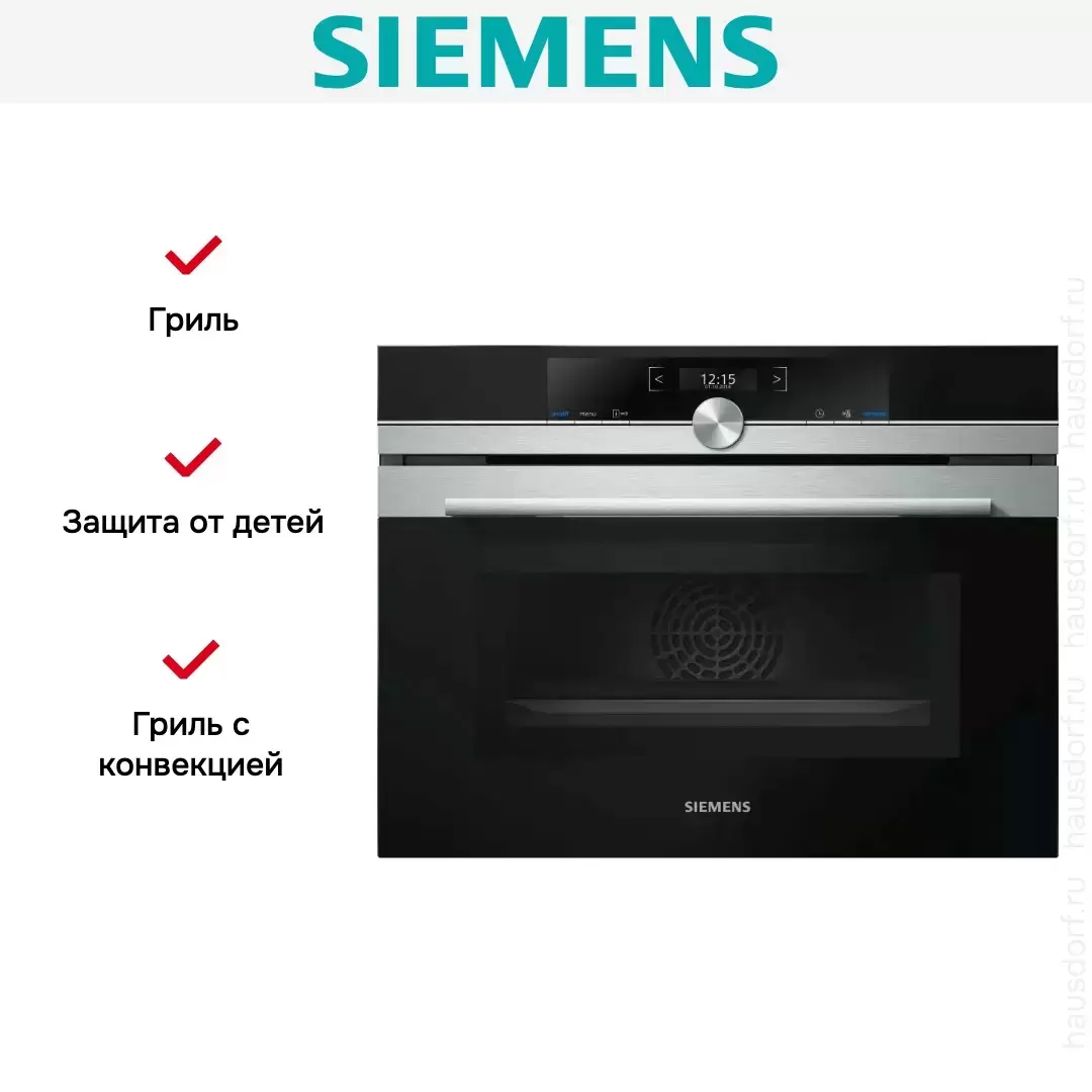 Духовой шкаф с функцией СВЧ Siemens CM633GBS1 — флагманская модель в линейке Siemens (немецкого производства), духовой шкаф премиального сегмента.