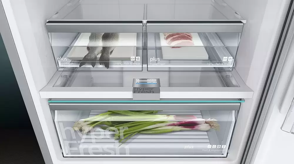 | Дополнительные параметры | ISensoric Тип зоны свежести hyperFresh plus Металлические аппликации на дверных полках Календарь хранения продуктов Ящик для хранения крупногабаритных продуктов bigBox |