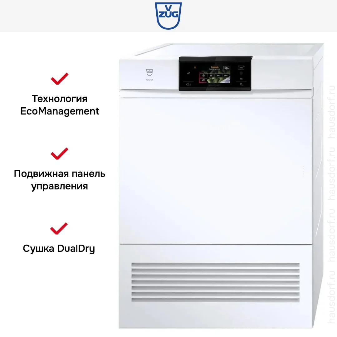 Сушильная машина V-ZUG AdoraDry V2000 AT2T-12031 L — сушильная машина высшего класса, швейцарского производства, сочетающая надёжность и передовые технологии V-ZUG.