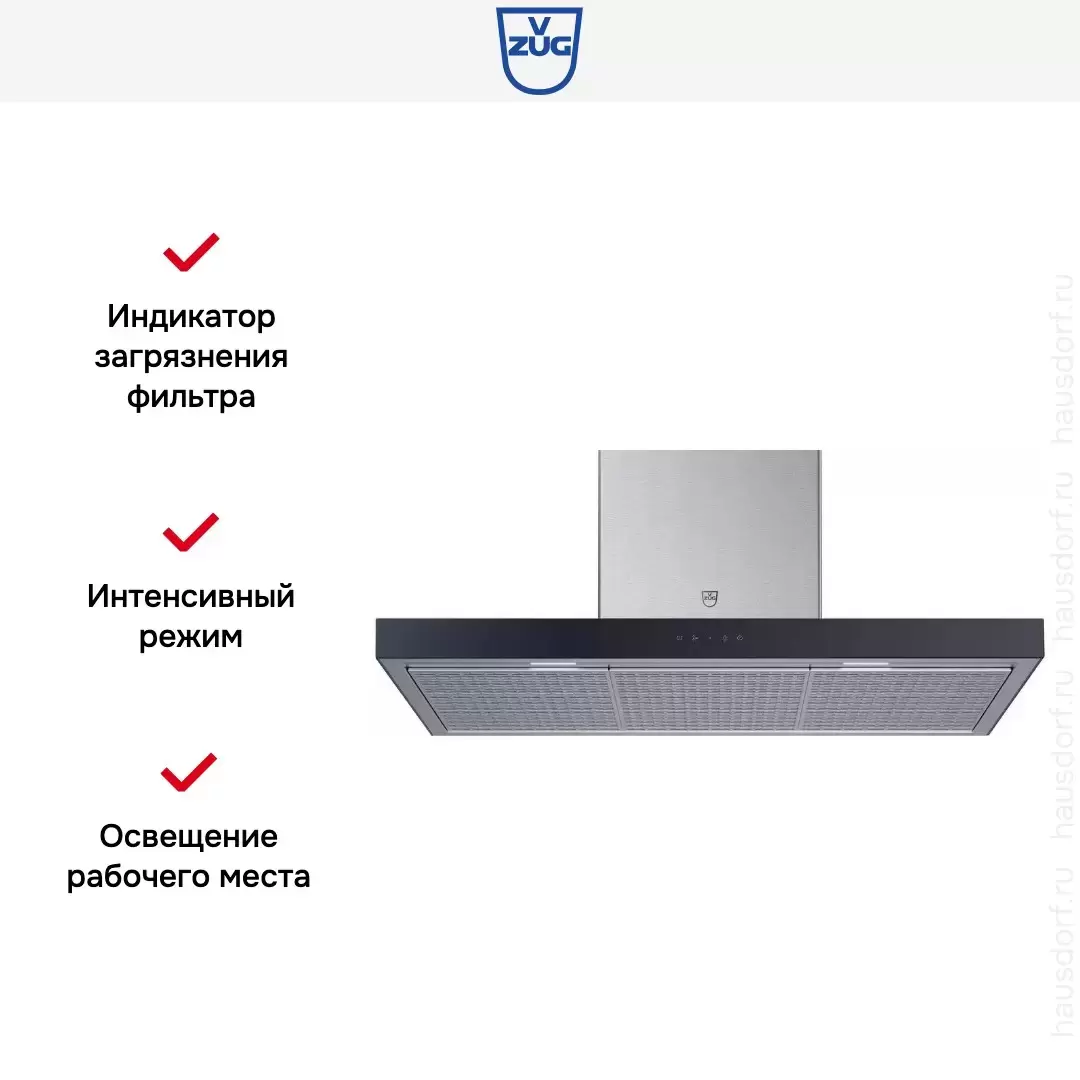 Вытяжка V-ZUG AiroClearWall V6000 AW6T12QTLG — кухонная вытяжка высшего класса, швейцарского производства, сочетающая надёжность и передовые технологии V-ZUG.