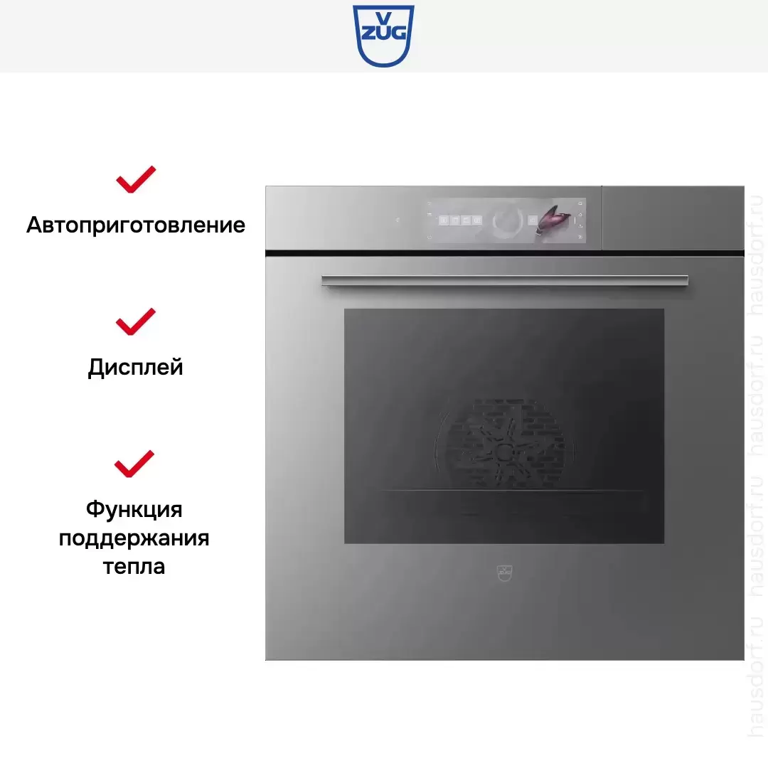 Встраиваемый паровой шкаф V-ZUG CombairSteamer V2000 60 CS2T-23036 (платиновое стекло) — флагманская модель в линейке V-ZUG (швейцарского производства), пароварка высшего класса.