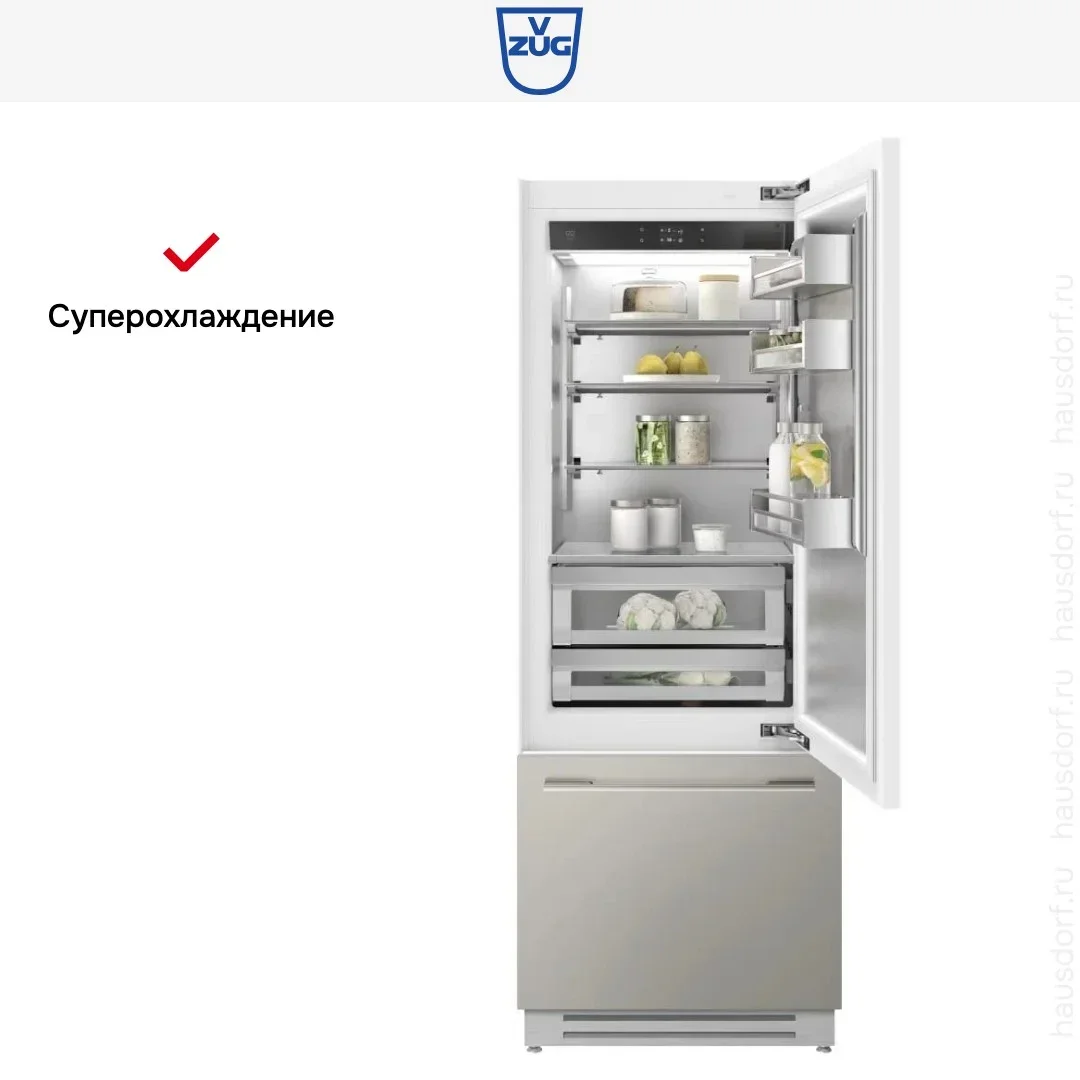 Встраиваемый холодильник V-ZUG CombiCooler V6000 Supreme CCO6T-51115 R — флагманская модель в линейке V-ZUG (швейцарского производства), холодильник премиального сегмента.
