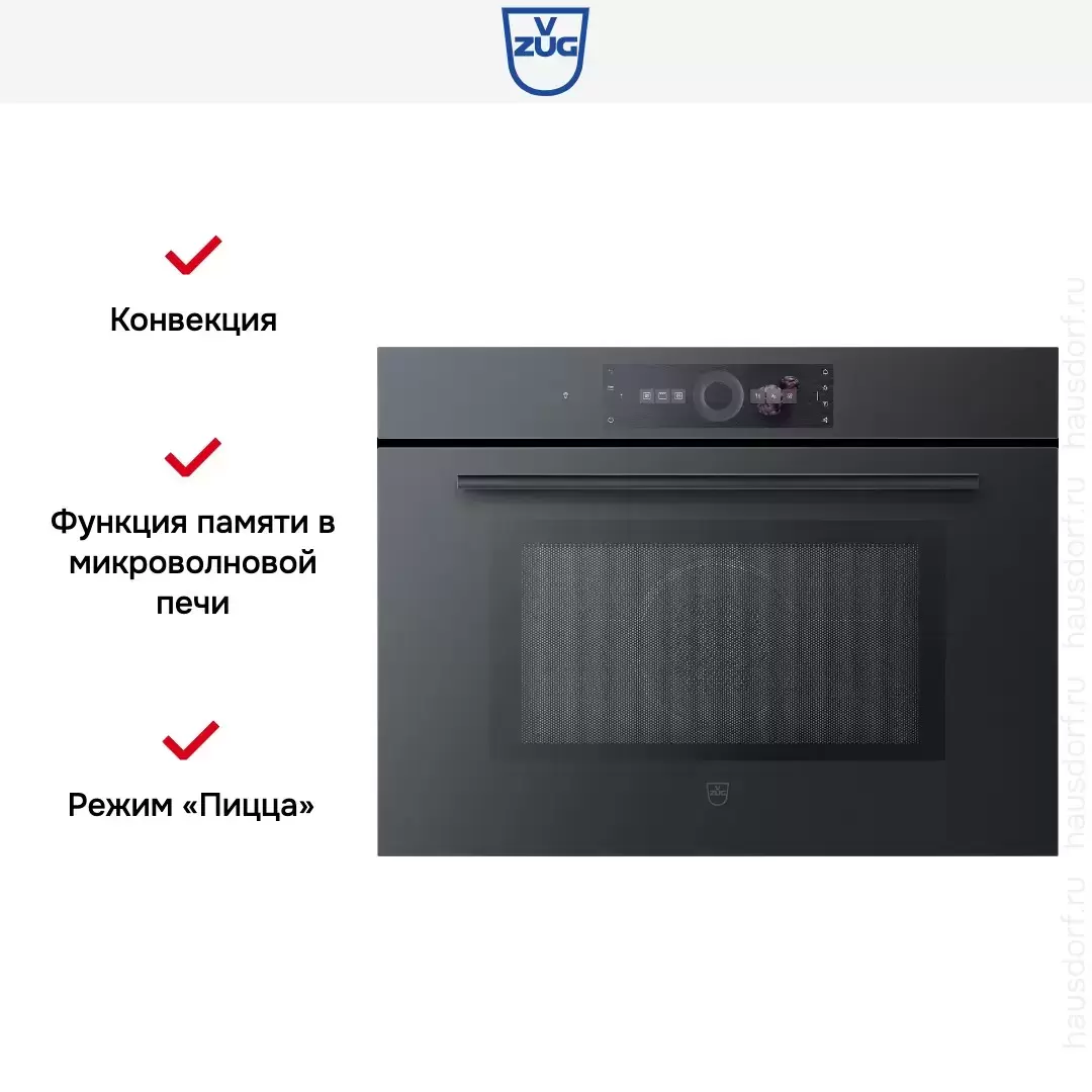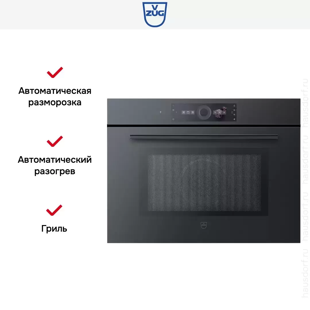 Встраиваемая микроволновая печь V-ZUG CombiMiwell V4000 45 CM4T-24025 (черное стекло) — флагманская модель в линейке V-ZUG (швейцарского производства), микроволновая печь класса люкс.
