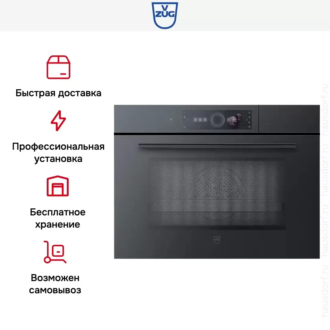 Встраиваемый комбинированный паровой шкаф V-ZUG CombiSteamer V6000 45M CSM6T-23041 (черное стекло) — флагманская модель в линейке V-ZUG (швейцарского производства), пароварка премиум-класса.