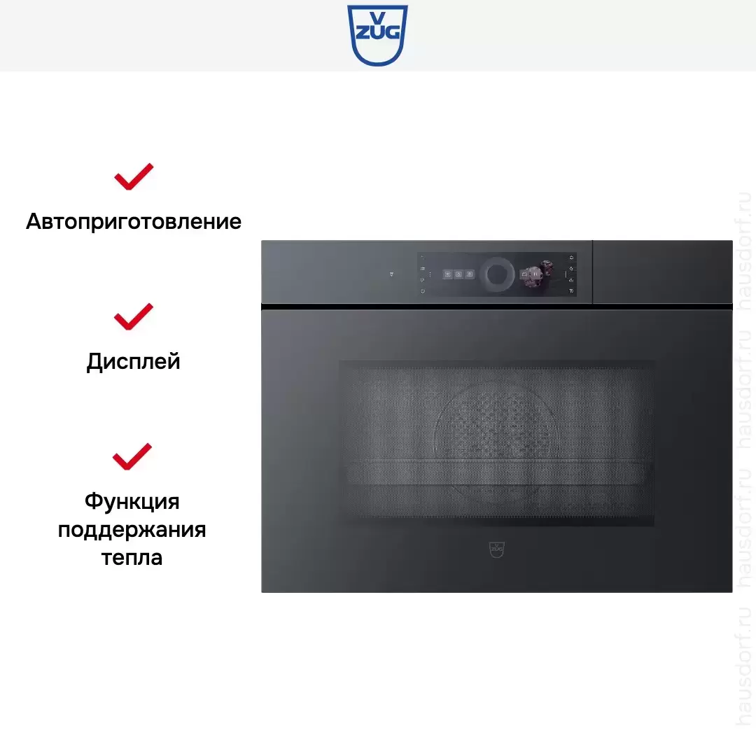 | Особенности функционала | Внешний парогенератор Приготовление пищи в вакуумной упаковке Sous-vide Быстрый разогрев Предварительный разогрев |