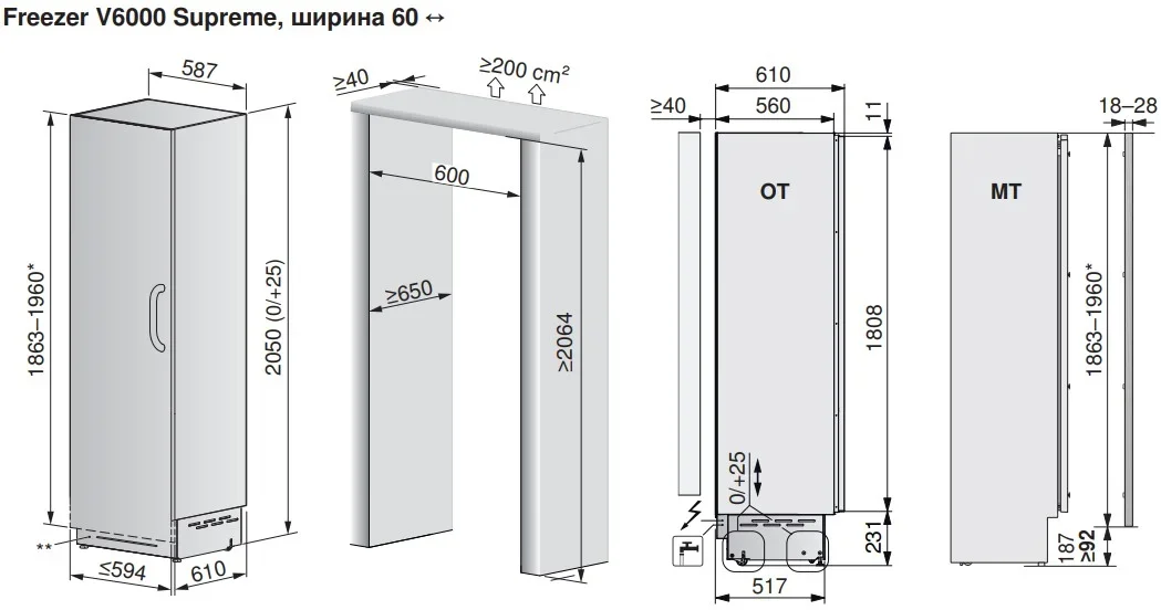 | Габариты ниши для встраивания (ВхШхГ) (см) | 206.4-208.9х60х65 |