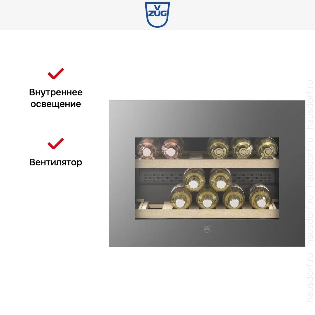 Встраиваемый винный шкаф V-ZUG WineCooler V4000 45 WC4T-51113 L платина — винный шкаф премиум-класса, швейцарского производства, сочетающий надёжность и передовые технологии V-ZUG.